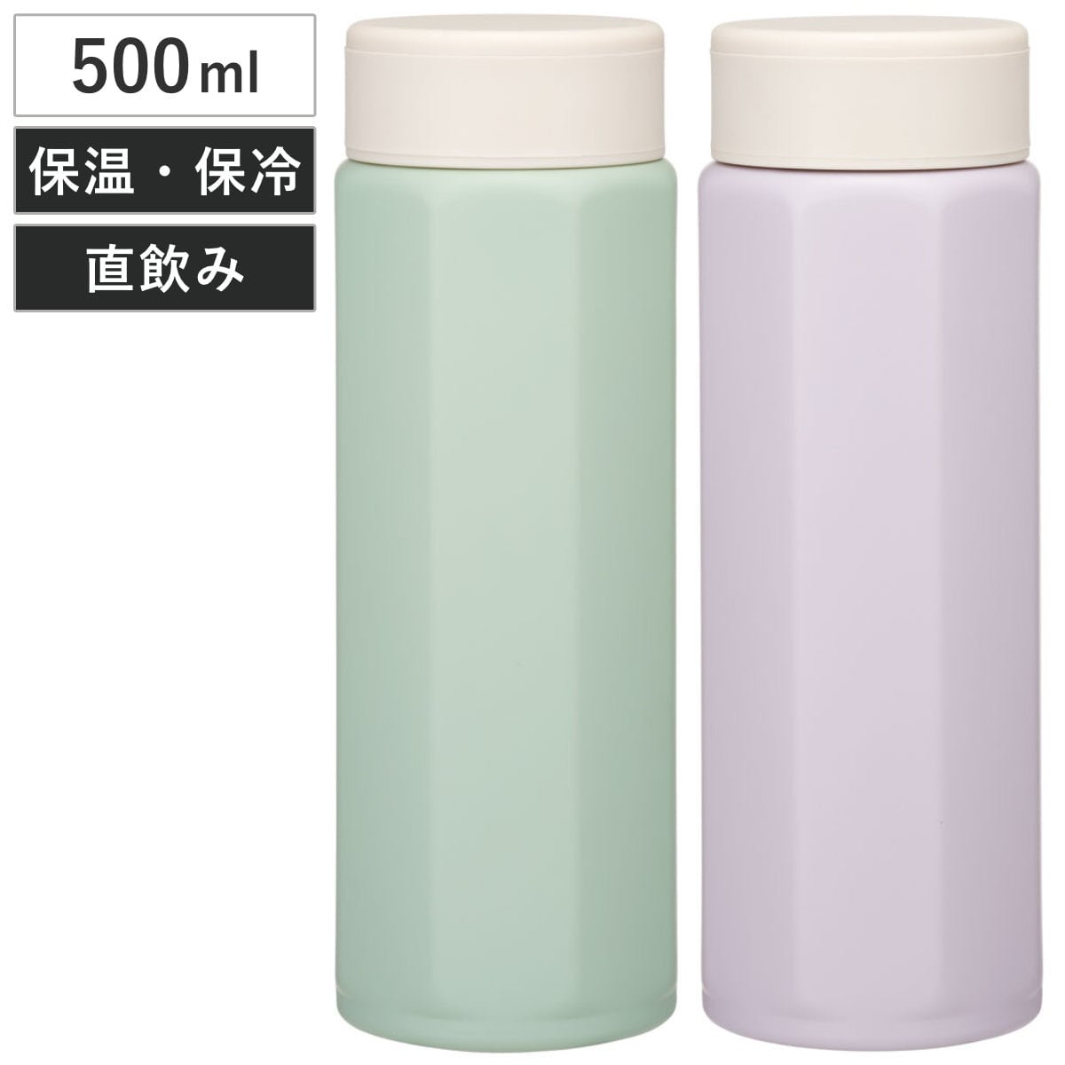 八角形で手にフィットしやすく、転がりにくい形状のマグボトルです。容量500mlの、持ち運びに便利なサイズです。ステンレスの真空二重構造で、保冷保温ができます。